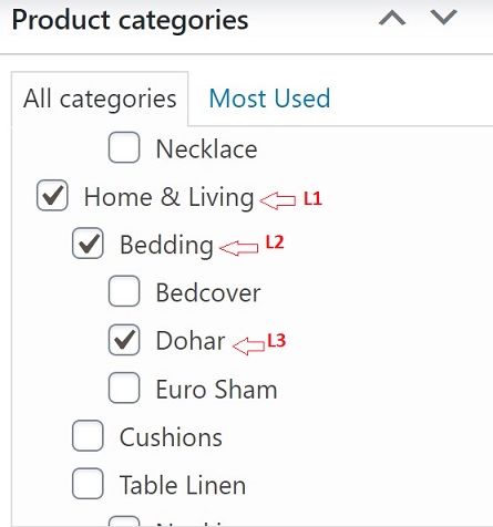 | Categories | category_ids | Category 1, Category 1 > Category 2 | CSV list of categories. ">" used for hierarchy. |