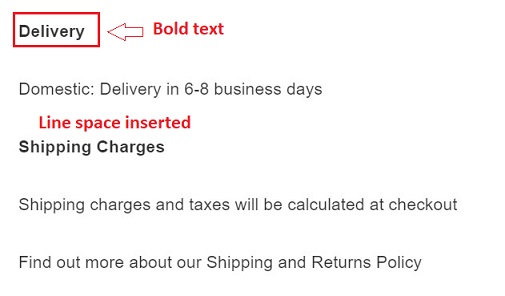 The delivery/ exchange field contains information regarding shipping, return of product etc.