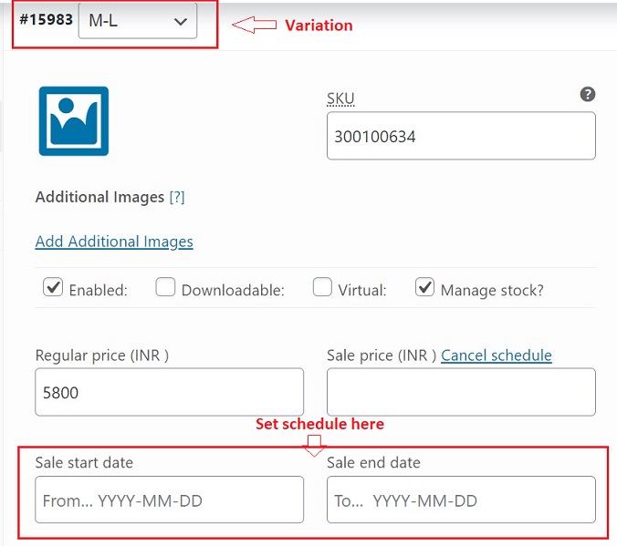 | Sale price | sale_price | 1000 | Any number or blank; Unit = INR |