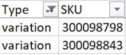 Note - Variation rows should always come below the Simple and Variable rows.